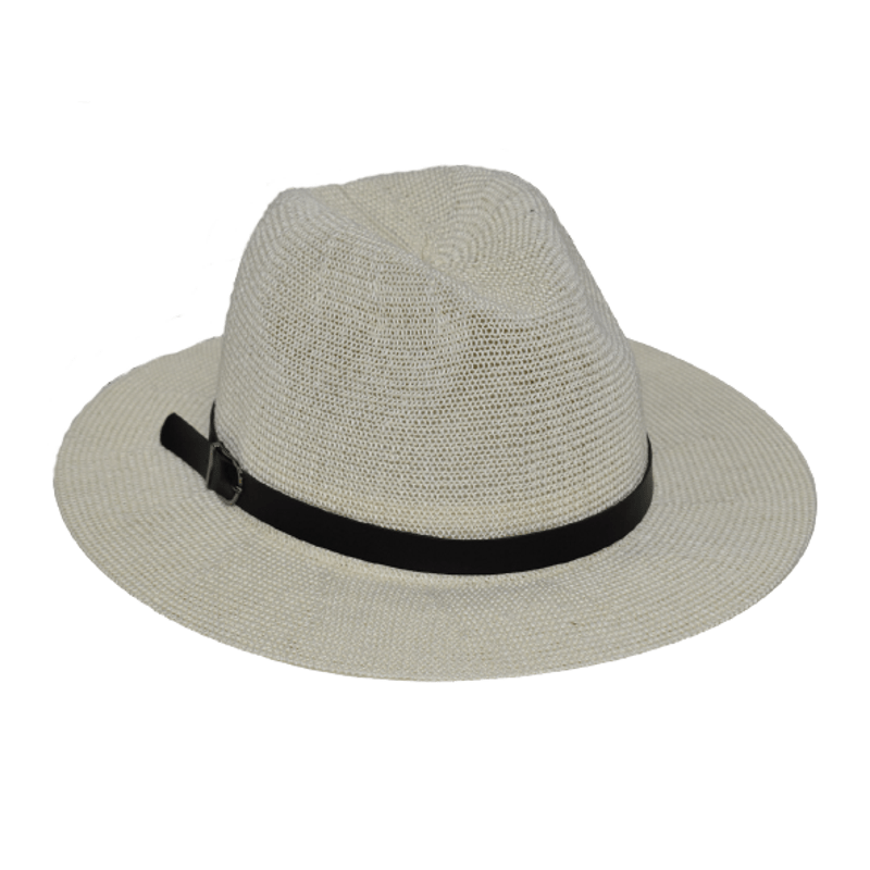 Εκρού αντρικό Καπέλο "Πάναμα" με δερμάτινη ζώνη