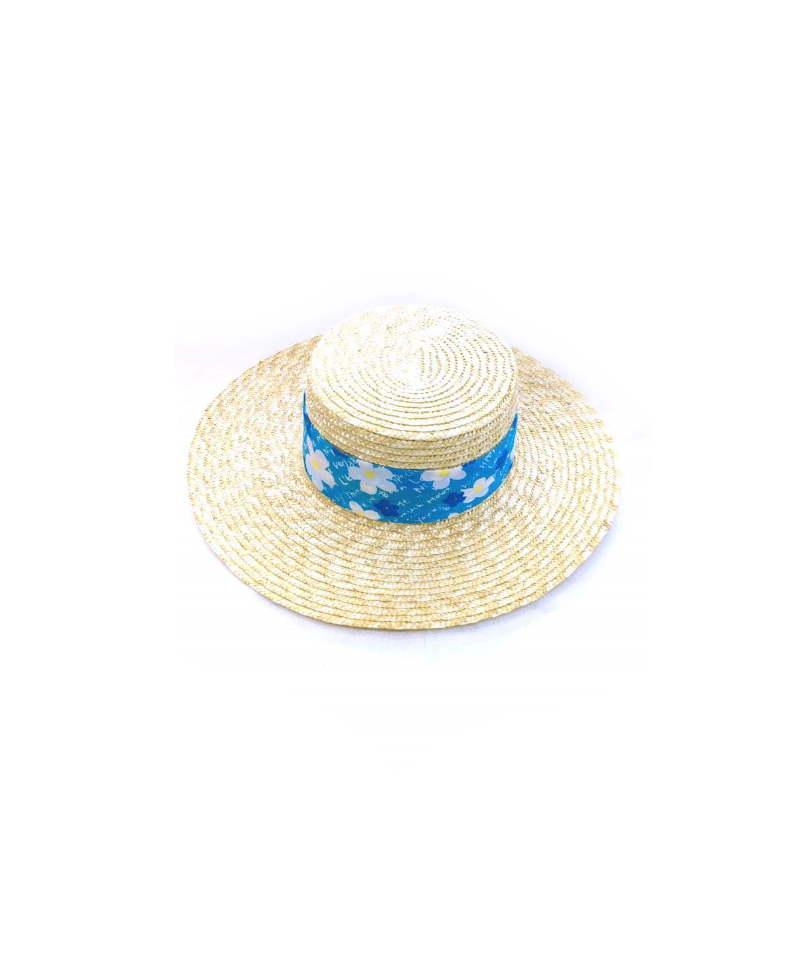 Γυναικείο καπέλο ψάθινο με μπλε κορδέλα με λουλούδια