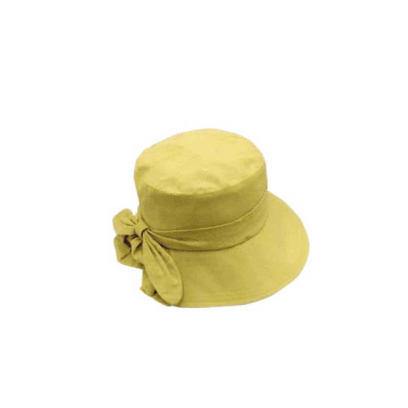 Γυναικείο βαμβακερό πάνινο καπέλο, εξαιρετικής ποιότητας, σε χρώμα κίτρινο, με φιογκάκι