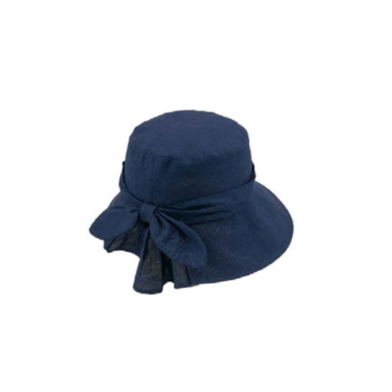 Γυναικείο βαμβακερό πάνινο καπέλο, εξαιρετικής ποιότητας, σε χρώμα μπλε σκούρο, με φιογκάκι